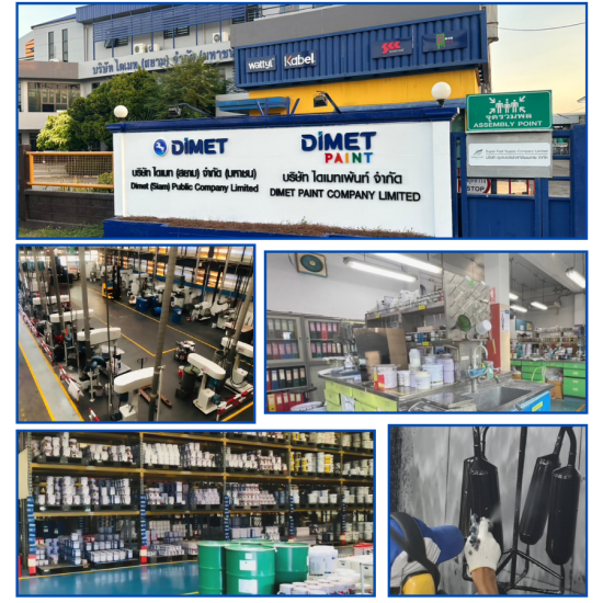 โรงงานของ Dimet ได้รับการพัฒนาอย่างต่อเนื่อง เพื่อรองรับการผลิตสีอุตสาหกรรมและระบบป้องกันการกัดกร่อนที่มีคุณภาพสูง โดยกระบวนการผลิตถูกออกแบบให้เป็นไปตามมาตรฐานอุตสาหกรรมสากล